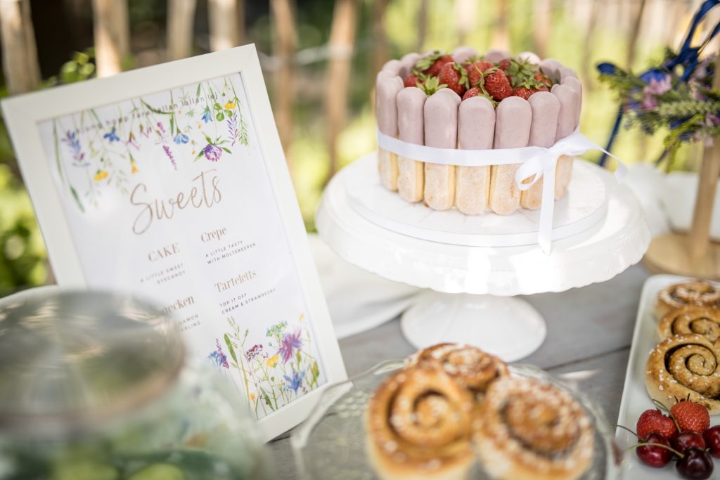 The wedding planner Maike von Masselschees and her creative team have collected ideas for a relaxed summer party for you and implemented them in a shooting. It is all about happy and relaxed togetherness with your loved ones, enjoying a beautiful day together and celebrating life! Not everything has to be styled down to the last handkerchief 😉 And maybe your grandmother or your neighbour has a great garden where you can celebrate together and in a family atmosphere!