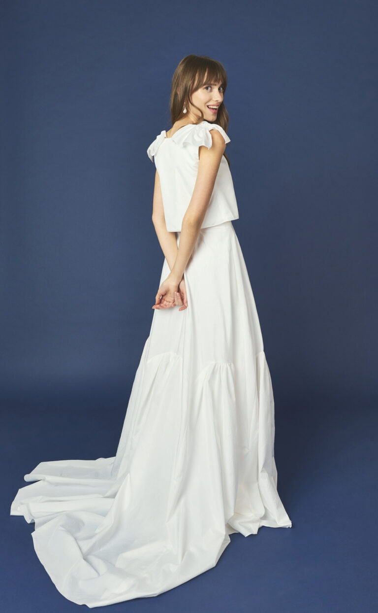 Dieses Ensemble ist ideal für Bräute, die einen individuellen, aber dennoch klassischen Look suchen, der sowohl auf minimalistischen als auch romantischen Elementen basiert. Das Elowyn Top und der Elowyn Rock bieten der Braut die Möglichkeit, sich an ihrem Hochzeitstag stilvoll und modern zu präsentieren.