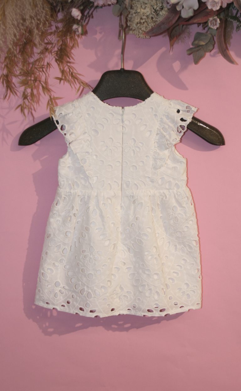 Das Babykleid Sunna ist aus einem schönen sommerlichen Baumwollstoff mit Lochmusterstickerei gefertigt. Es hat kleine Volants im Oberteil, einen gerafften Rock und einen feinen Reißverschluß im Rücken. Ein weiches Jerseyfutter sorgt für ein angenehmes Tragegefühl, so dass die Kleinen sich den ganzen Tag wohlfühlen.
