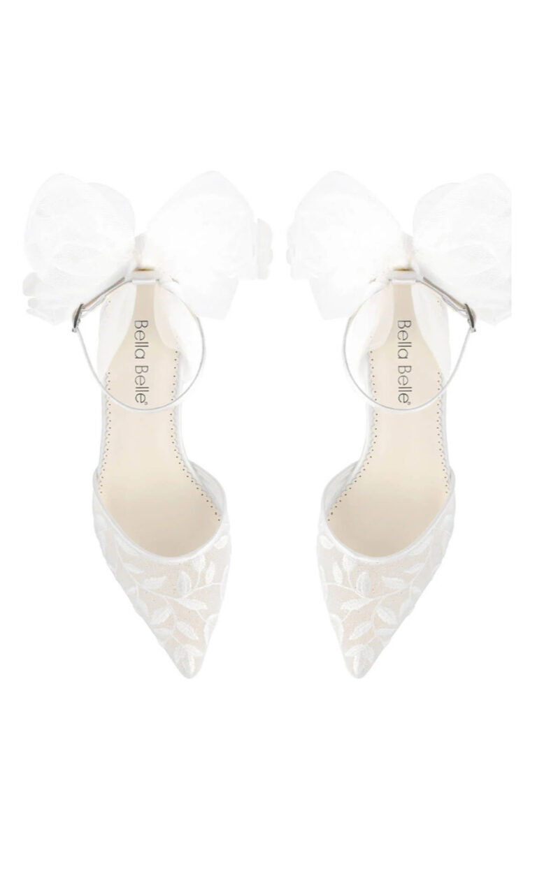 Bella Bella – Joelle: Handbestickte Spitze mit schimmernden Glitzern, eine große Tüllschleife und verstellbare Knöchelriemen, die Deine Füße an Ort und Stelle halten – mit Joelle kannst Du stilvoll die Nacht durchtanzen Filigranen floralen Verzierungen sind romantisch schön und bequem. Ein absoluter Hingucker für Deinen Brautlook. Der niedrige Blockabsatz gibt Dir in Deinem Brautschuhen den perfekten Tragekomfort.