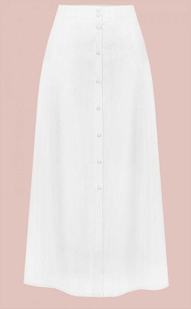Der Midi-Rock aus Seide hat eine Leiste aus handgefertigten Knöpfen in der vorderen Mitte. Er ist eine wunderbare Grundlage für ein Standesamtoutfit oder für ein elegantes Sommeroutfit in Verbindung mit einem lässigen Oberteil. Auch in der winterlichen Variante mit einem Pulli getragen ist er ein super Lieblingsstück, an dem Du viel Freude haben wirst.