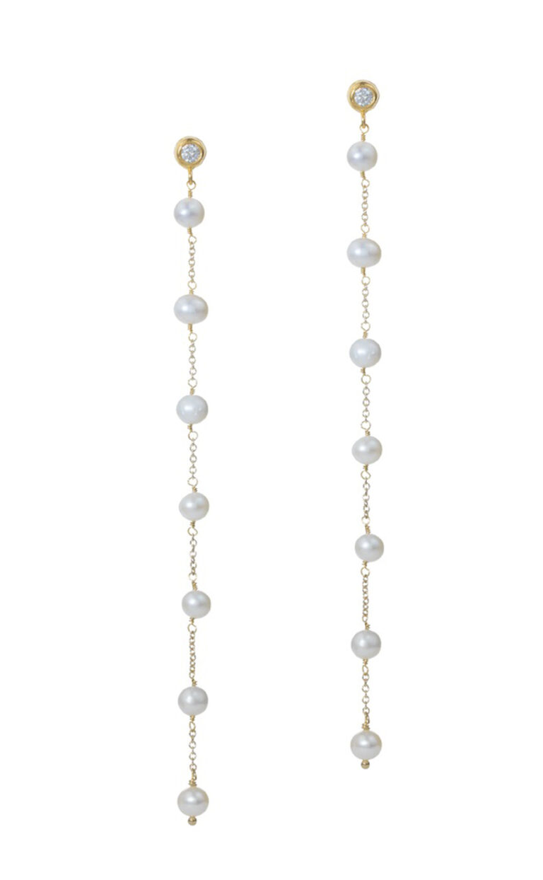 Es ist DEIN Tag, DEIN Schmuck – und mit diesen extravaganten und extralangen Ohrringen wirst Du auf deiner Hochzeit für einen unvergesslichen Wow-Effekt sorgen. Mit einem glitzernden Kristallstecker und sieben Süßwasserperlen pro Seite ist dieser zeitgemäße Ohrschmuck trotz seiner schlichten, schnörkellosen Form ein wahres Statement-Piece, das auch nach der Hochzeit das kleine Schwarze oder den „Jeans und weiße Bluse“-Look veredelt.