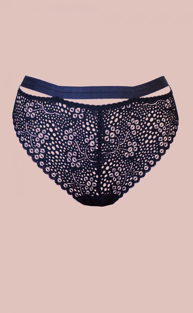 Romantischer Slip aus französischen Spitze in schwarz. Sexy Cut-Outs und ein breites Gummi betonen die Taille.