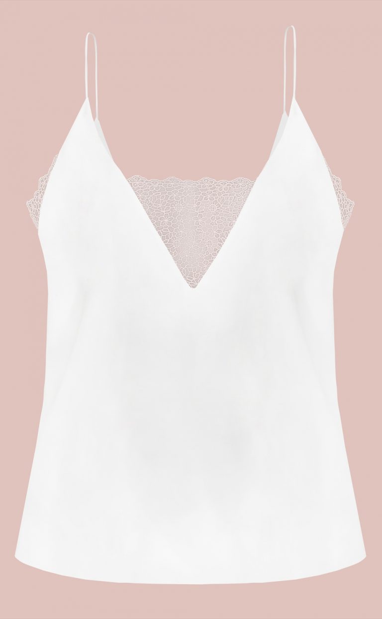 Das Top hat feinen Spaghetti-Trägern , als Highlight ist es mit einer edlen Spitze im Rückenausschnitt und an den Seiten verziert.
