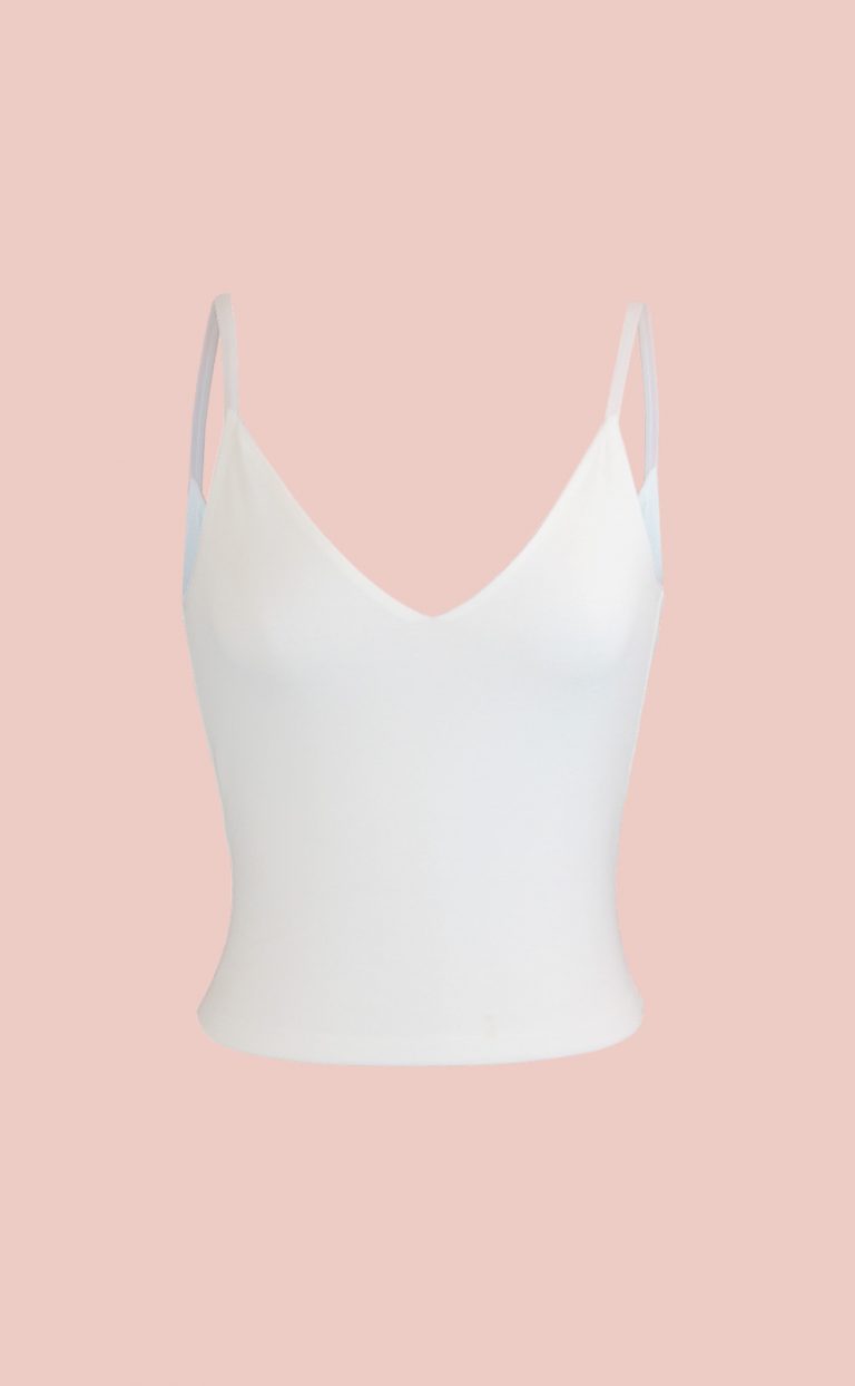 Ein pures Träger-Top in der Farbe ivory. Perfekt, um es unter ein transparentes Oberteil zu ziehen. Die Träger sind aus einem elastischen Material gefertigt und können sich so gut anpassen.